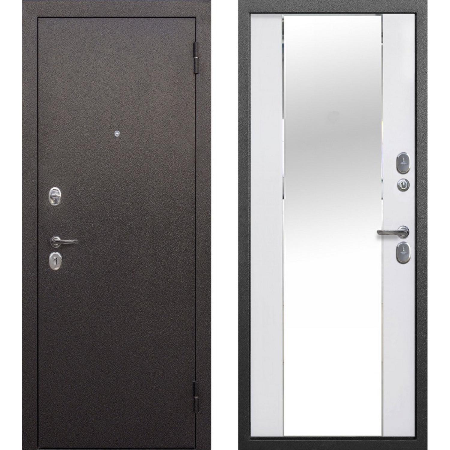 Входная дверь Тайга 7 см Зеркало Серебро антик - Зеркало Эмалит белый