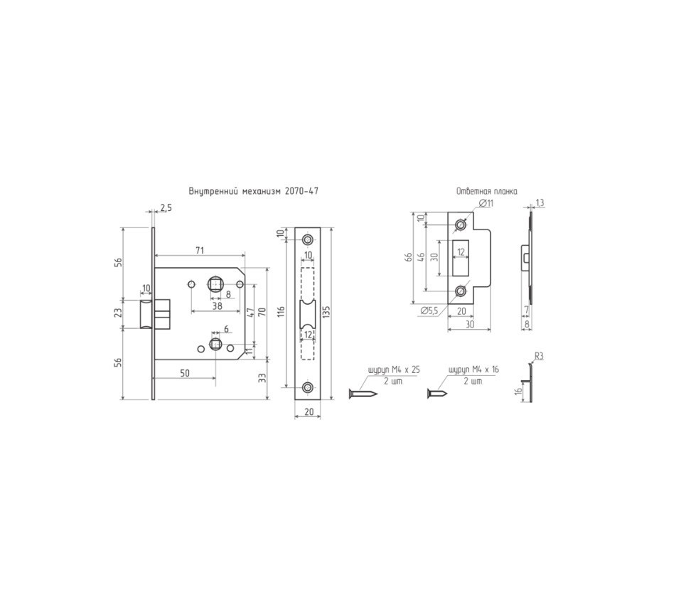 Внутренний механизм 2070-47мм (Нора)