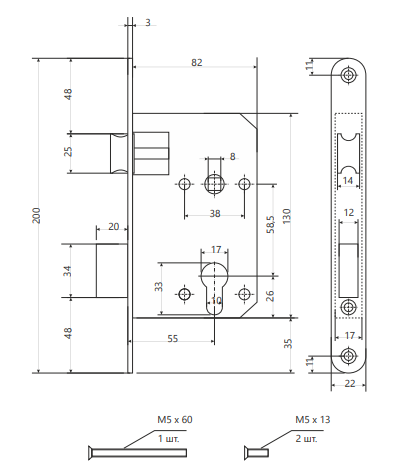 Замок врезной 1423