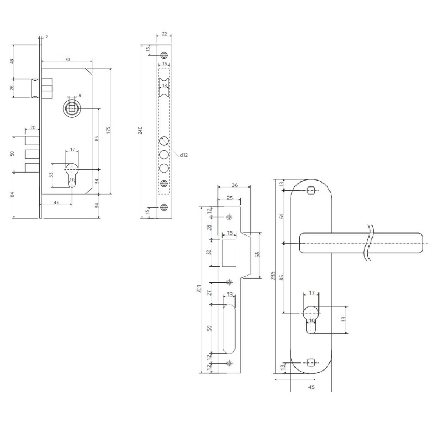 Замок врезной 2600/85/0126