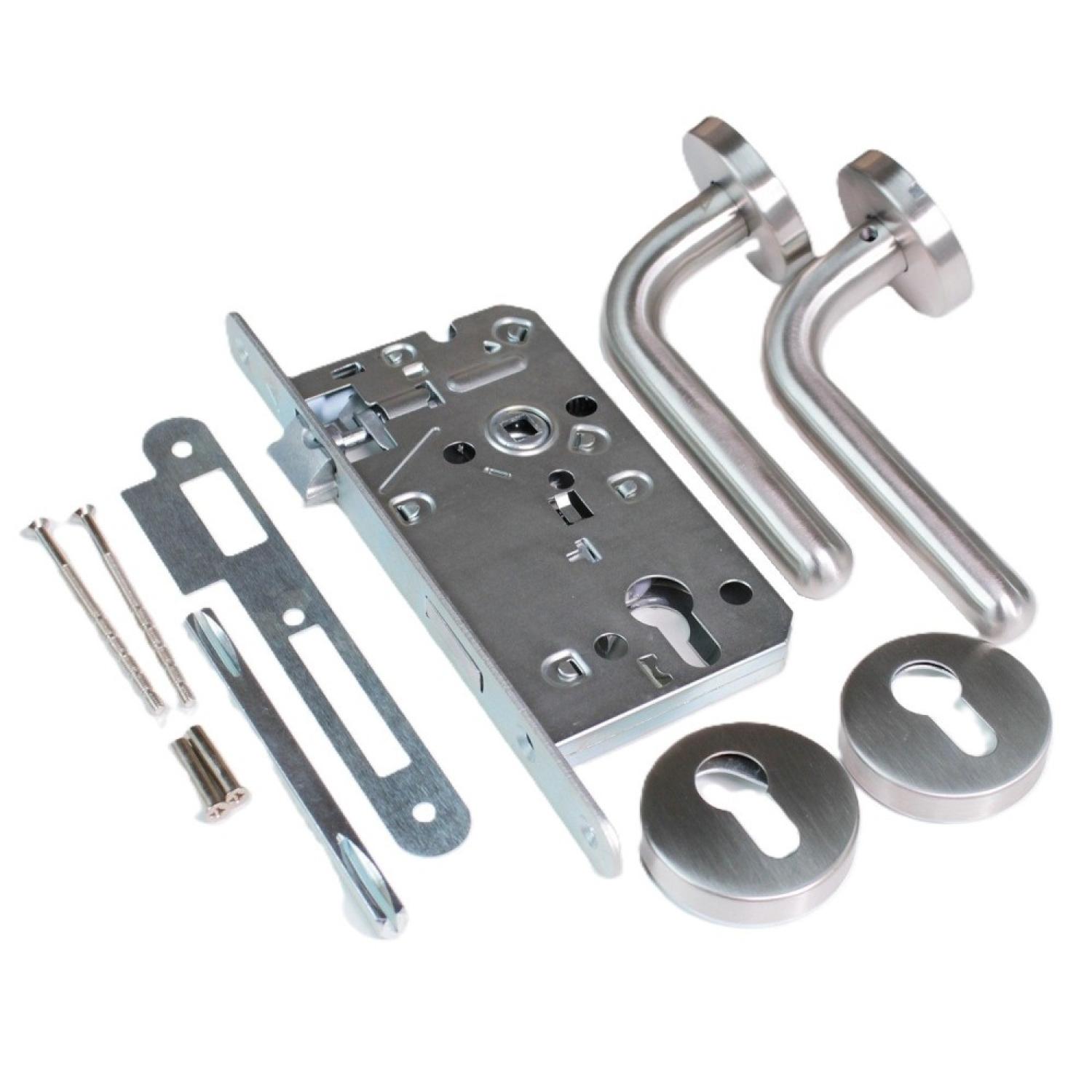Замок врезной 7504/41 с ручками из нерж. стали на раздельной розетке
