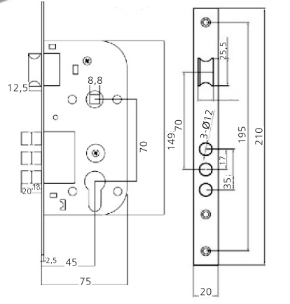Замок врезной M1527/60
